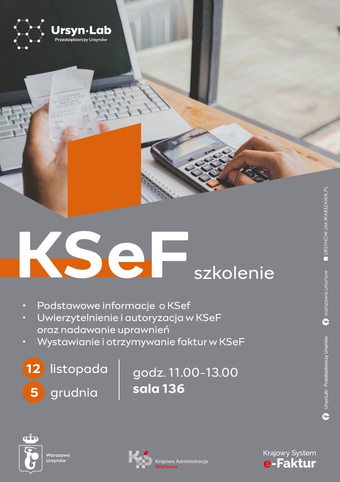 Szkolenie ma charakter informacyjno-edukacyjny i jest częścią cyklu działań UrsynLabu, wspierającego przedsiębiorczość i cyfrowe kompetencje mieszkańców. Spotkanie ma na celu przybliżenie uczestnikom zasad funkcjonowania KSeF, wyjaśnienie jego korzyści oraz obowiązków związanych z nowym systemem.
