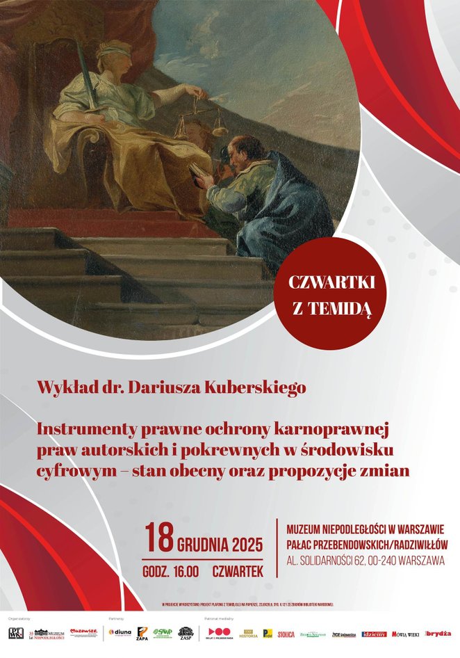 Tematem przewodnim wystąpienia doktora Dariusza Kuberskiego będzie analiza instrumentów prawnych chroniących prawa autorskie i pokrewne w środowisku cyfrowym. Prelegent skoncentruje się na niedoskonałościach obecnego systemu prawnego w walce z naruszeniami wykorzystującymi środki komunikacji elektronicznej.
