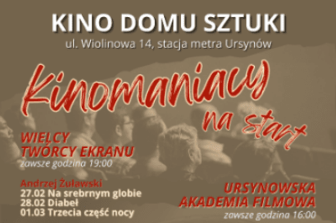 Program wydarzeń przygotowano z myślą o osobach, które szukają w kinie czegoś więcej niż tylko czystej rozrywki. Wszystkie projekcje odbywają się w Domu Sztuki przy ul. Wiolinowej 14, tuż przy stacji metra Ursynów.