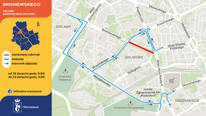 - Tablice informacyjne będą sugerować kierowcom korzystanie z Trasy Armii Krajowej do Broniewskiego