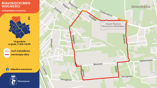 W niedzielę, 14 grudnia, kierowcy poruszający się po Białołęce muszą liczyć się z poważnymi utrudnieniami. Z powodu kolejnej edycji Białołęckiego Biegu Wolności na około trzy godziny zamknięte zostaną ulice wokół Aresztu Śledczego przy ulicy Ciupagi.